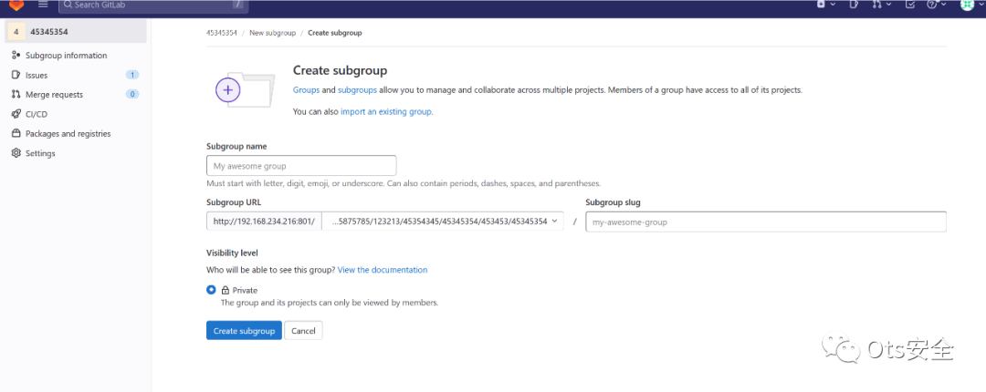 Gitlab的group可以嵌套 一个group可以有多个子group.
