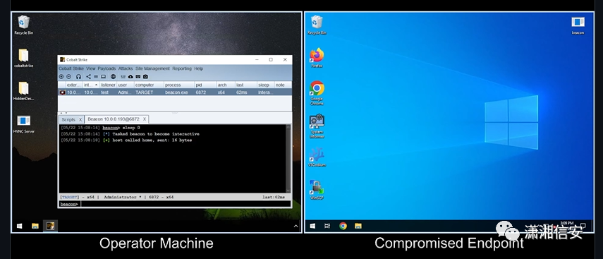HiddenDesktop <server> <port>您应该会在服务器计算机上看到一个新的空白窗口。默认情况下,BOF 不执行任何应用程序。您可以使用应用程序启动器 BOF 在新桌面上执行常用程序: