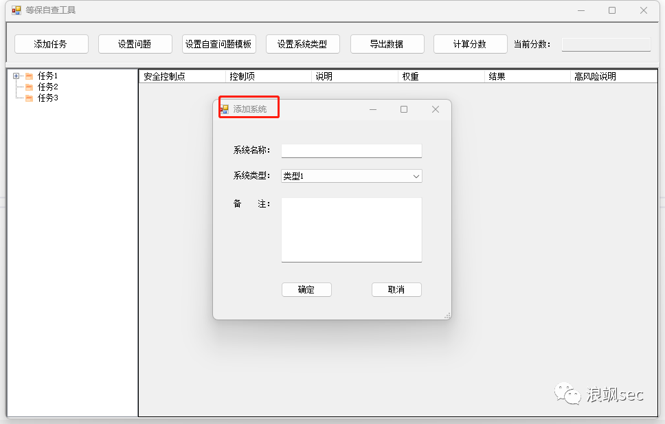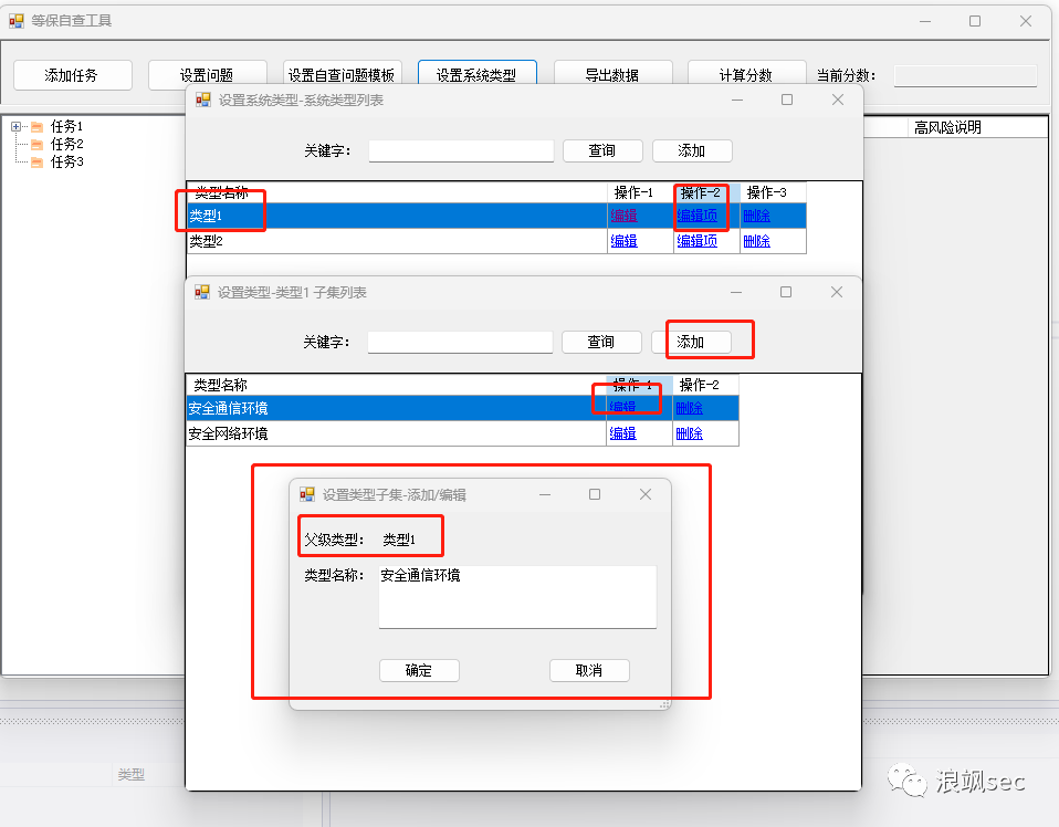 1.0.1版本只能修改系统类型的名称,本次升级可以增加减少系统类型,比如现有类型是等保三级和等保二级,那用户可以自行添加等保四级或其他类型,左侧树形图任务处添加系统选择类型即可。