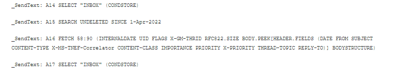 清单1:WindowsMail客户端发送的调试器输出IMAP命令