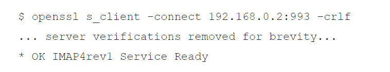 客户端需要做的第一件事是在特定端口上与远程服务器建立连接。在这种情况下,我们使用openssl从终端连接到自定义IMAP服务器。