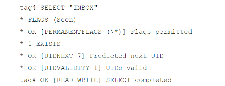 在知道邮箱的文件夹结构后,客户端可以使用SELECT命令在该文件夹上打开一个会话,以便访问邮箱中的邮件。