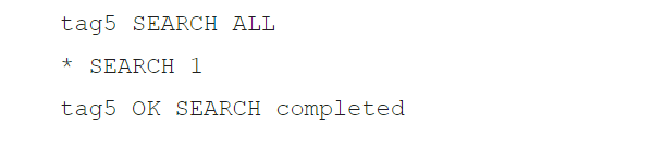 SEARCH命令在邮箱中搜索与给定搜索条件匹配的邮件。搜索条件由一个或多个搜索关键字组成。它可以支持更全面的搜索条件,例如查找具有指定字段名称的标题并且在标题的文本中包含指定字符串的消息。上面的示例显示了最简单形式的SEARCH命令,它将搜索服务器中的所有可用消息。未标记的响应表明自定义IMAP服务器中有一条消息可用。