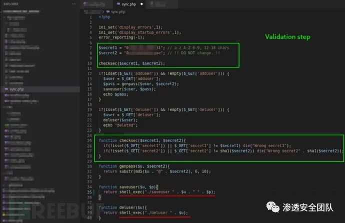 git-dumper http://example.com/.git/ output我认为这是在代码中寻找漏洞的好机会,而且我也没有着急报告暴露的 .git。结果发现,在代码中,他们使用了对本地bash脚本的调用,通过shell_exec()函数保存和删除ftp用户,该函数采用了未经过滤的用户输入,这导致了RCE漏洞的出现。