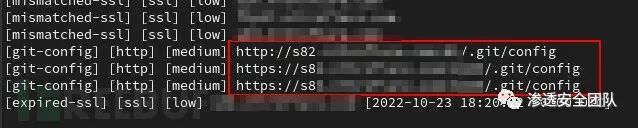 点击nuclei查看这个项目的输出,可以发现几个主机上暴露的 .git/目录,通过这些目录可以下载源代码: