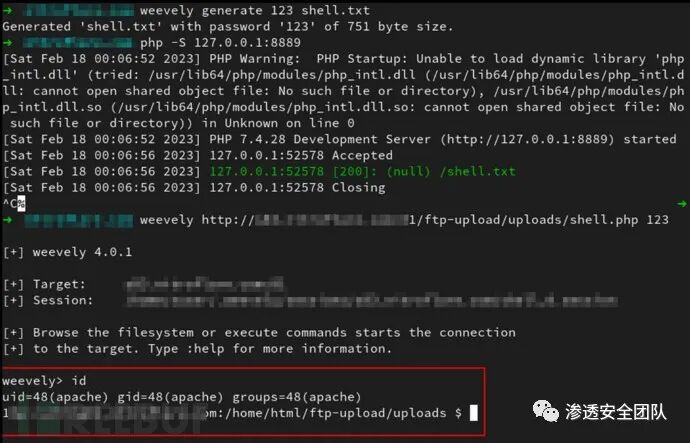 当向这个脚本发出请求时,易受攻击的服务器将获取我们的shell.txt,并将其保存为shell.php。这样,shell.php就会被上传到易受攻击的服务器上。