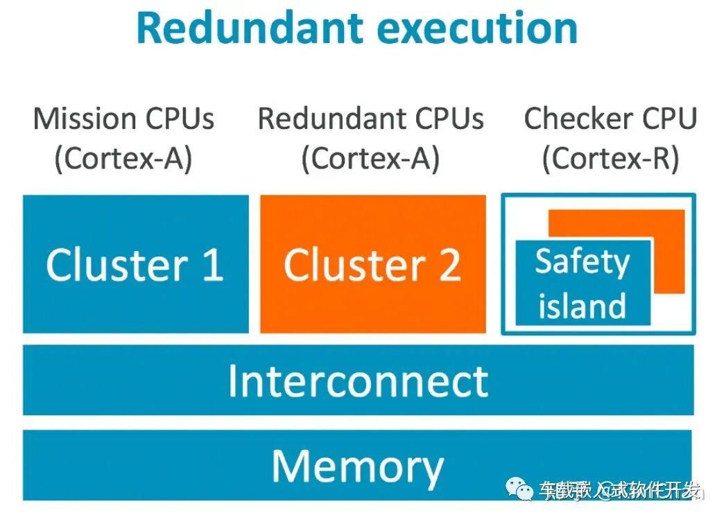 2. 冗余执行(Redundant execution) 提供更高性能功能的 CPU 通常更复杂,确定性更低,因此对锁步更具挑战性。这导致了解决上述挑战还需要考虑更多方案,软件冗余或冗余执行就是一种选择。