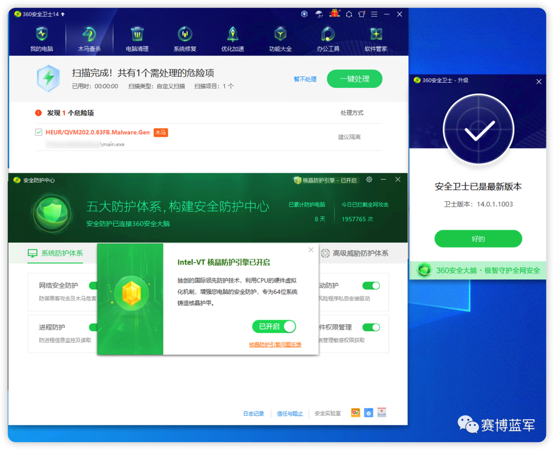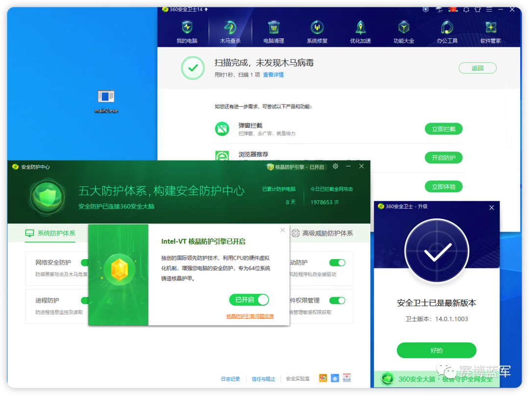 CGO_ENABLED=0 GOOS=windows GOARCH=amd64 go build -trimpath -ldflags="-w -s" main.go接下来就是惊心动魄的查杀环节了,我们上360并开启何晶对该EXE进行查杀,如果何晶并没有报毒,那么也就证明了该Shellcode加载器是可使用的,目前笔者对该项目中的Shellcode加载器进行分离,发现目前是有7种shellcode loader 是可以绕过360核晶的,至于是那7种我在这里就不直说了,防止被非法人员利用。反正思路就在这块。
