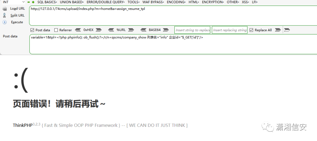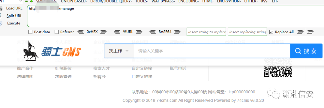 正巧最近有一个74cms<6.0.48版本的rce,正巧能用上,先找到URL,出现页面错误,则说明有希望,参考文章: