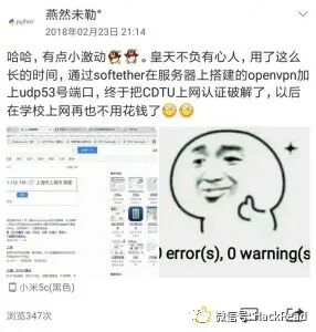 CDTU(我们学校的校园网)已经把该方法给修复了。而且还是我和学校网管中心的老师一起修复的。哈哈,没想到吧!不过写这篇文章是为了把整个过程总结下来,供大家参考,如果大家在免流这方面有什么更骚的思路,欢迎和我交流。