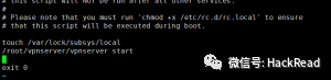 在 exit 0 之前写入 /root/vpnserver/vpnserver start