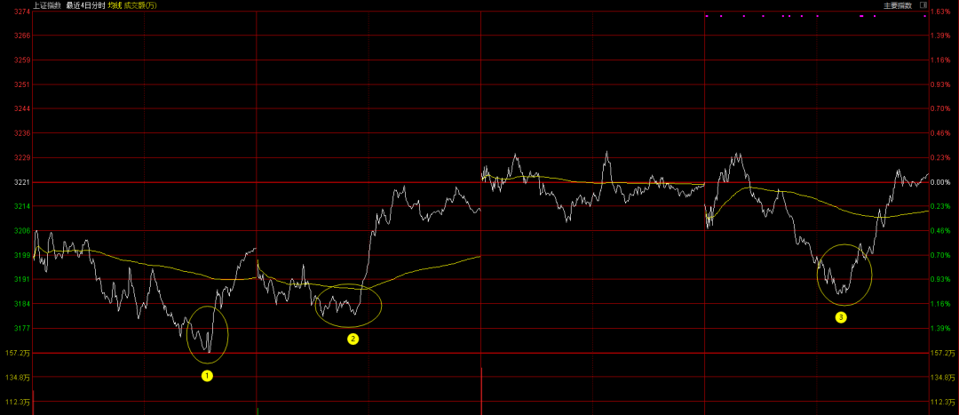 大盘最近四天,日内最明显的V起有两次,是上周四和今天,但上周五其实也有过一次。