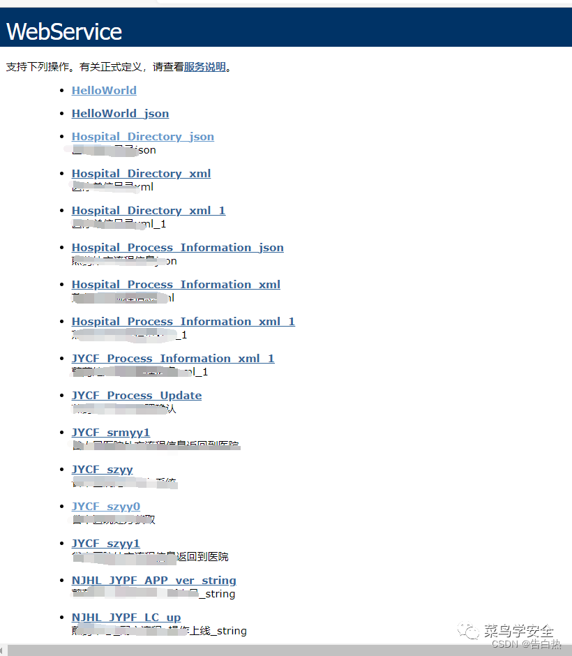 在WebService的开发,特别是和第三方有接口的时候,走的是SOAP协议,然后会有WSDL文件(或网址),这时候可以对wsdl文件进行相关的测似,敏感信息等等。