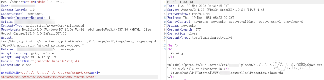 public function delall(){if(isset($_POST['send'])){if(validate::isNullString($_POST['pid'])) tool::layer_alert('没有选择任何图片!','?a=pic',7);$_fileDir=ROOT_PATH.'/uploads/';foreach($_POST['pid'] as $_value){$_filePath=$_fileDir.$_value;if(!unlink($_filePath)){tool::layer_alert('图片删除失败,请设权限为777!','?a=pic',7);}else{header('Location:?a=pic');}}