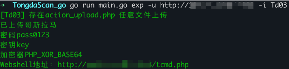 TongdaScan_go exp -u http://1.1.1.1 -i Td03 公众号:web安全工具库0x03 项目链接下载