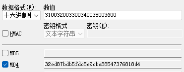 明文密码:12345转换成16进制:313233343536转换成unicode:310032003300340035003600md4加密:32ed87bdb5fdc5e9cba88547376818d4