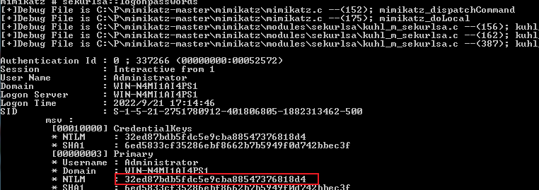 Windows中不会保存明文密码,只会保存密码的hash,本机用户的密码hash是存放在SAM文件里而域内用户的密码hash是存在DC的ntds.dit文件里
