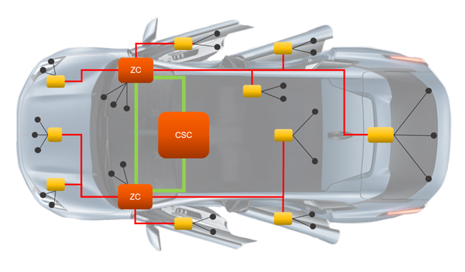 以往的传统汽车采用分布式的EE架构,需要上百个ECU(电子控制单元)。传统架构下,各个ECU不但直接驱动执行器和传感器,还承担了业务功能的很多控制逻辑。因此,一个功能的实现往往需要耦合多个ECU,功能的迭代和单个ECU的升级变更往往需要多个ECU共同配合修改。而各个ECU采购于不同的供应商,最终导致商务复杂性增加,技术复杂性加大,变更成本推高以及软件交付周期加长。随着整车EE架构朝着功能域集中式的发展,极氪智能科技上一代EE架构已实现功能域集中架构,由4大功能域主控承担整车级别的各域功能逻辑软件部署中心的角色,将执行器和传感器与功能逻辑分离,普通ECU变成纯粹的执行和传感单元,域内的逻辑接口交互在域控内部就可完成,跨域逻辑接口交互通过FlexRay主干网实现。ECU实现功能业务逻辑和执行器控制逻辑的解耦,功能接口模块化、标准化。这样通过4个功能域主控,就能实现对执行传感层硬件的控制,在架构设计上为SOA提供了良好的基础。
