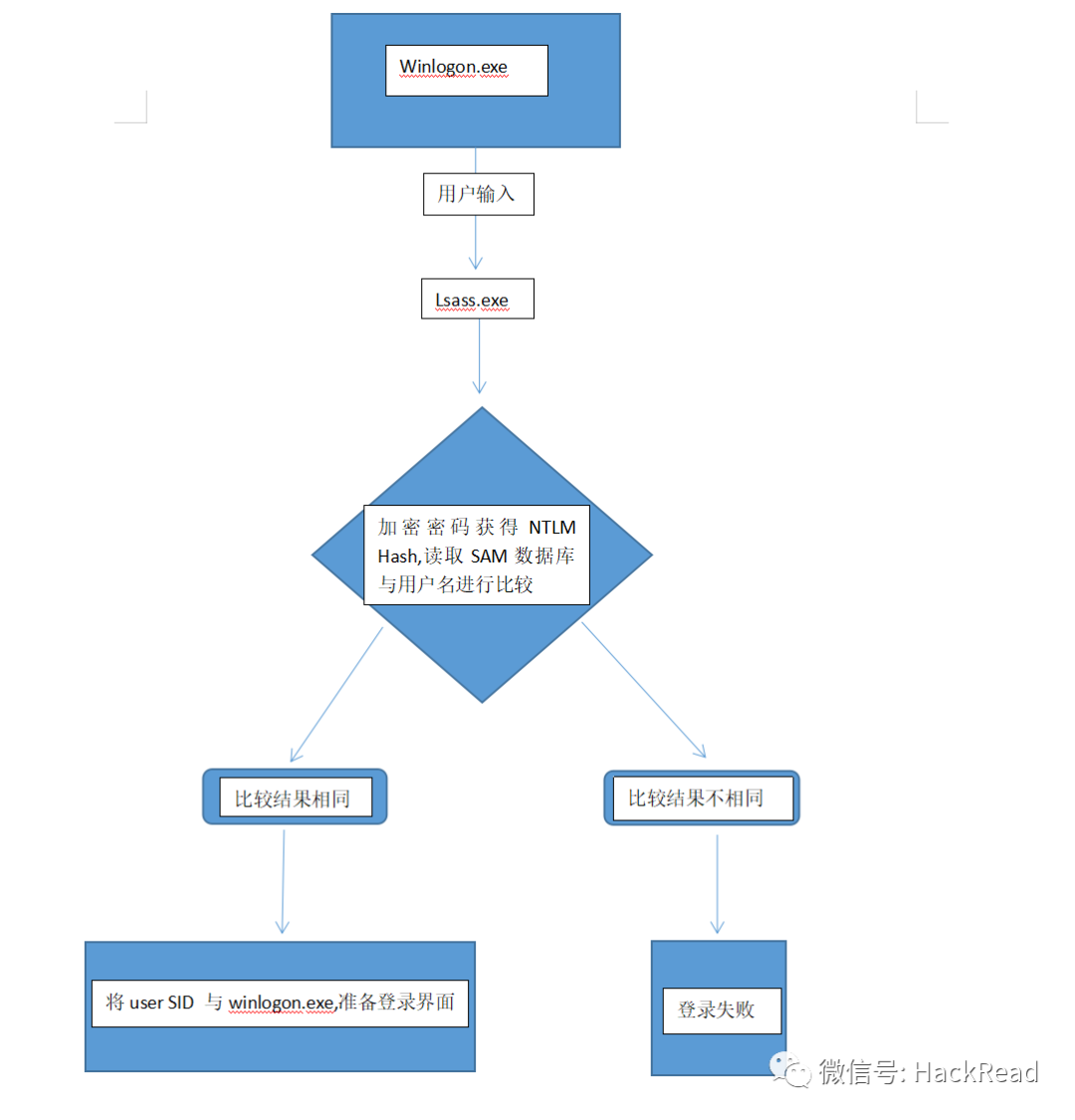 Windows 本地认证采用 sam hash 比对的形式来判断用户密码是否正确,计算机本地用户的所有密码被加密存储在 % SystemRoot% system32configsam 文件中,当我们登录系统的时候,系统会自动地读取 SAM 文件中的 “密码” 与我们输入的密码进行比对,如果相同,证明认证成功.
