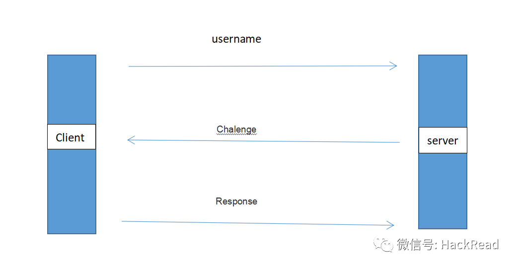 首先 server 会发送一个 username 给 server,当 server 接收到这个信息时,首先会在本地查询是否存在这样的一个用户,如果不存在,则直接返回认证失败,如果存在,将会生成一个 16 位的随机字符,即 Chalenge,然后用查询到的这个 user 的 NTLM hash 对 Chalenge 进行加密,生成 response2,将 response2 存储在本地,并将 Chalenge 传给 client。当 client 接收到 Chalenge 时,将发送的 username 所对应的 NTLM hash 对 Chalenge 进行加密即 Response,并 Response 发送给 server。