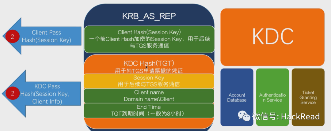 AS:client 发送信息给 KDC 通过 AD 认证之后返回一个经过 AD 中查询到的对应的 NTLM Hash 加密的生成的随机 Session key(Session Key 是 AS 随机生成的)