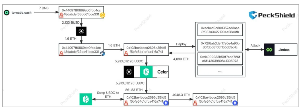 Jimbos协议遭遇闪电贷攻击,损失4000 ETH,价值超750万美元。