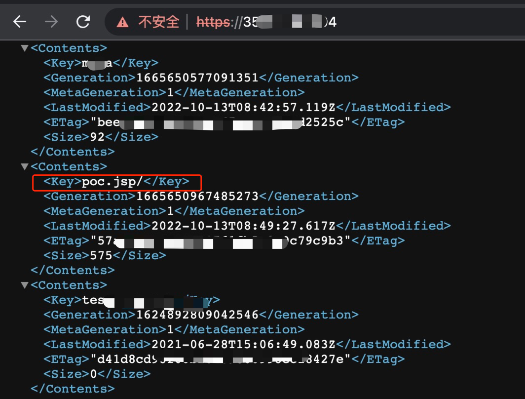 谷歌云存储桶通过ip或域名访问用的是同步的访问策略,ip可访问的使用域名也可访问;通过存储桶的内容我们即可知道为同一个存储桶资源。3.4 小结