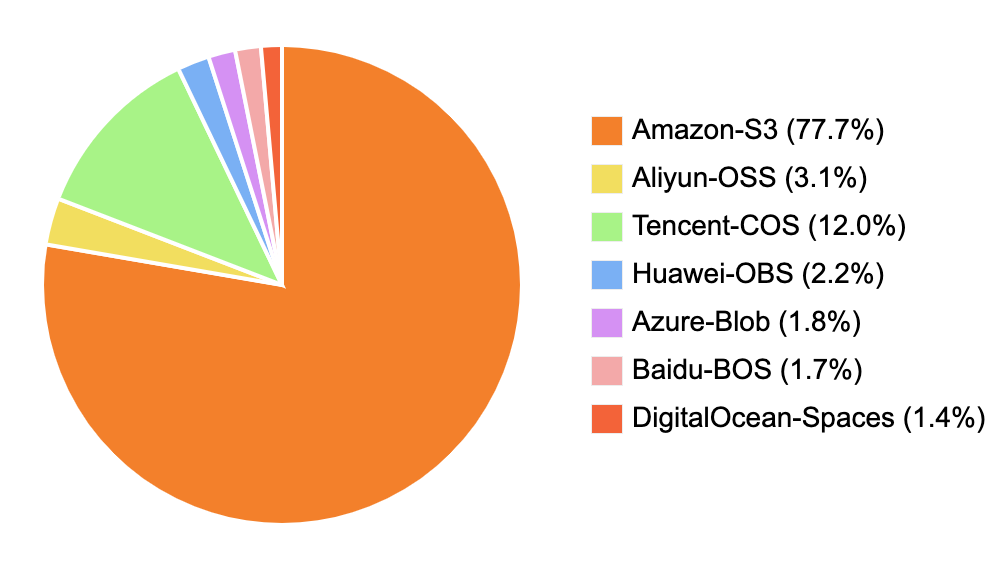 存储桶是对象的载体,可理解为存放对象的“容器”,对象以扁平化结构存放在存储桶中,无文件夹和目录的概念,用户可选择将对象存放到单个或多个存储桶中。由于存储桶具有扩展性高、存储速度快、访问权限可自由配置等优势, 如今已纳入各大公有云厂商的关键基础设施,例如 Amazon 的 S3、Microsoft 的 Blob、阿里云的 OSS、腾讯云的 COS 等。