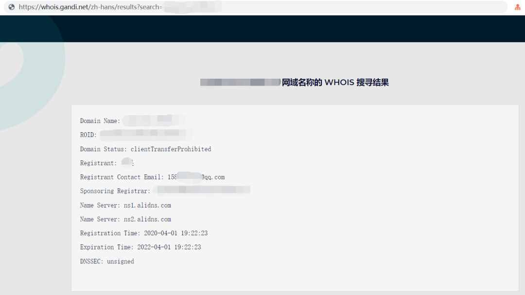 首先查询了一下网站的 whois 信息,运气挺好,直接查到了名字 林* 和 qq 邮箱,其中 qq 邮箱账号和网站首页所留的 qq 号是一致的,都是 158xxxxxx。