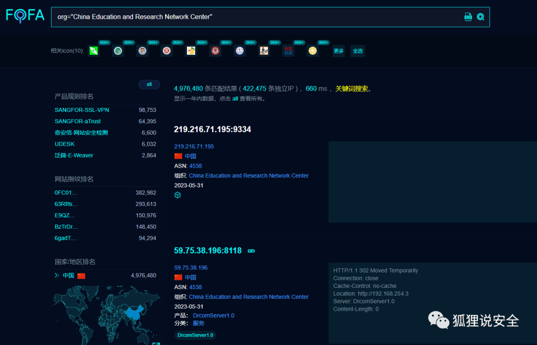 因为一个学校的icon_hash 往往都是几个固定的,所以我们搜索icon_hash的时候,也会有不一样的效果。org="China Education and Research Network Center"