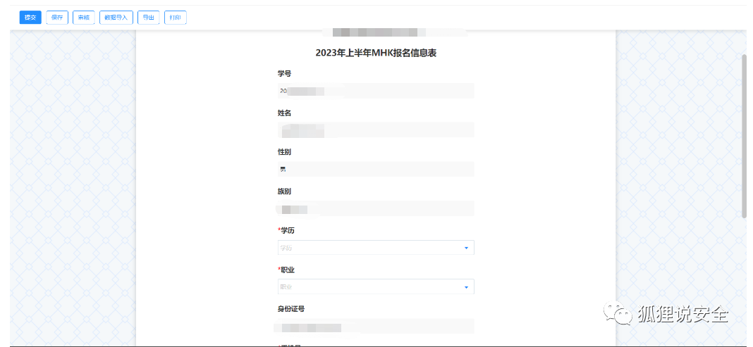 登录后使用bp代理,访问MHK报名信息表,该表单中包含身份证![]()
