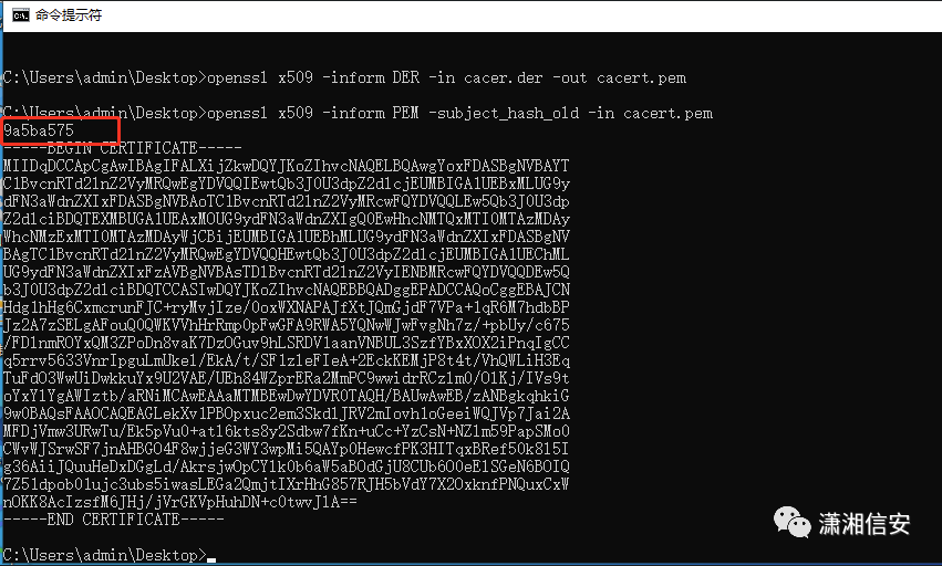 使用openssl进行证书转换,将cer后缀的证书转换为pem后缀