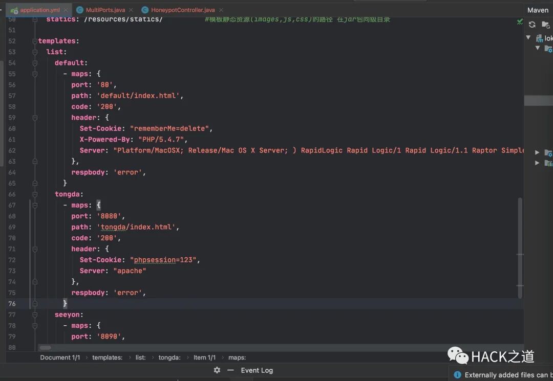 port是限制的端口,path是本地模板的路径,code是返回的状态码,header是相应的header,respbody本来是想正对一些特定的请求返回不同页面的,逻辑没有思考的很清楚,暂时搁置了。