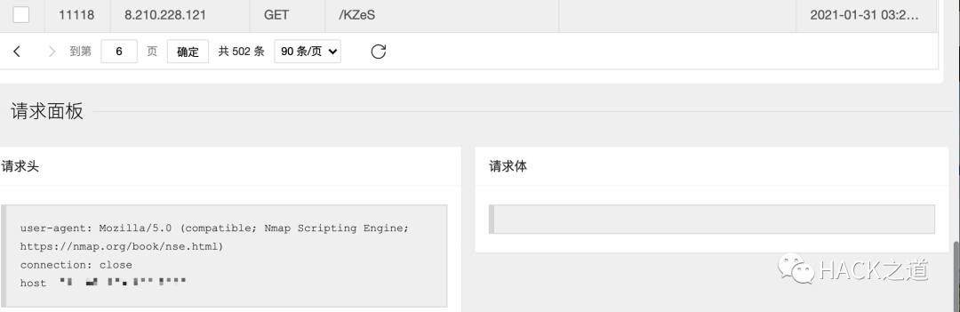 1.在公网跑起来后我收到的第一个请求是nmap扫cobaltstrike的。