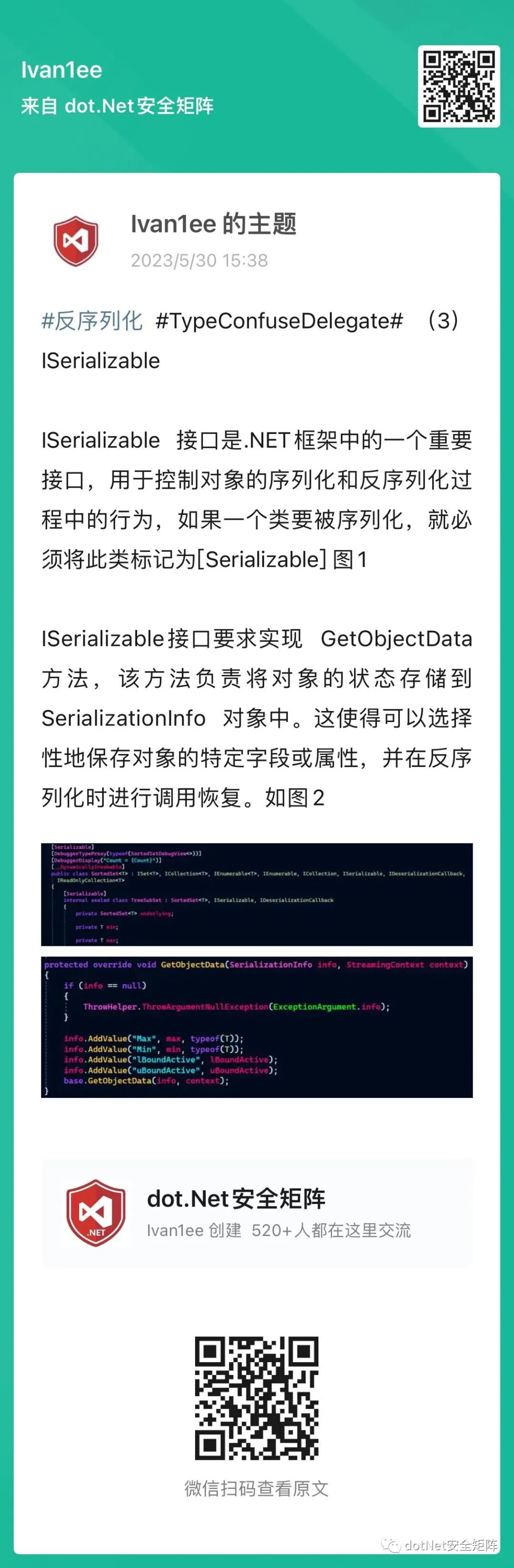 dotNet安全矩阵知识星球 — 聚焦于微软.NET安全技术,关注基于.NET衍生出的各种红蓝攻防对抗技术、分享内容不限于 .NET代码审计、 最新的.NET漏洞分析、反序列化漏洞研究、有趣的.NET安全Trick、.NET开源软件分享、. NET生态等热点话题、还可以获得阿里、蚂蚁、字节等大厂内推的机会