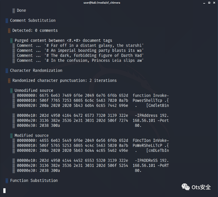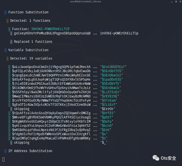 Chimera 做了几件事来混淆来源。该transformer函数将字符串分成多个部分并将它们重建为新变量。