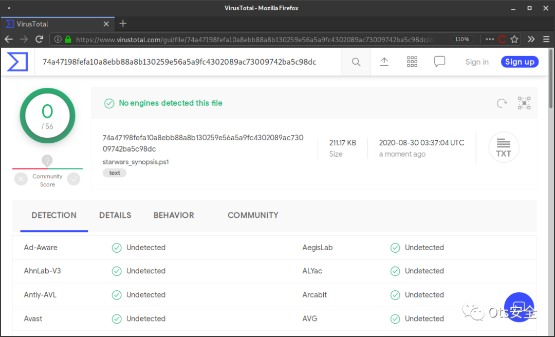 在奇美拉之后又来了。VirusTotal 报告了0 次混淆版本检测。