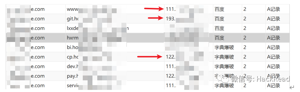 对test.com的域名做信息收集后发现了几个子域均解析致某云服务器,但是ip不同。