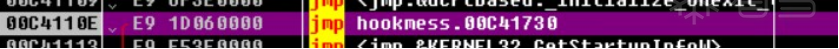 Hook后执行过程的指令被我们修改成了jmp 00C4110E
