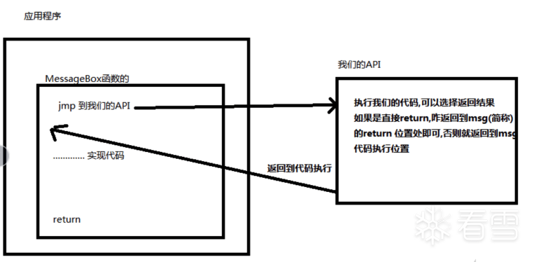 最后执行以前的函数流程,将修改后的MessageBoxA函数的弹窗显示出来。