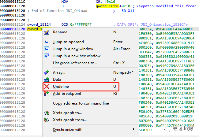 确认后发现对应的地址是一堆常量 那就需要我们手动将对应地址回归undefined状态(快捷键 U)