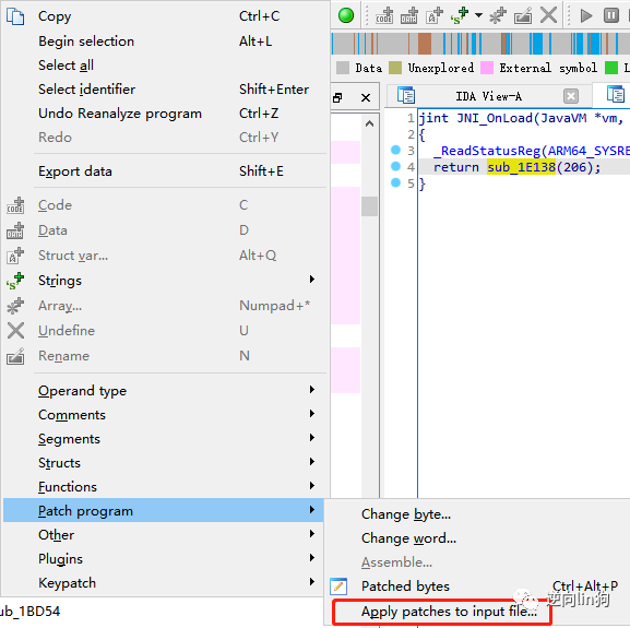 这里被IDA识别为sub方法 不过问题不大 只需保存Patch文件 然后IDA重新打开即可