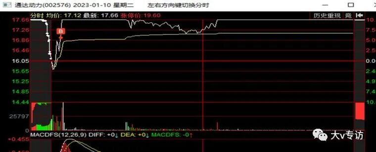 2、2023.01.06日黄色曲线-42,红色曲线-26共振大冰点。当时市场最高标数源科技三板,还有5个二板。最终市场选择了通达动力,通达动力是一个新主线周期的启动,不同于全聚德是已经启动大消费主线周期的第二阶段。因此当天是发现不了的,但是次次日PK胜出,可以买入。自己去翻看2023.01.10日通达动力、众业达的分时图,选出来通达动力也不难。