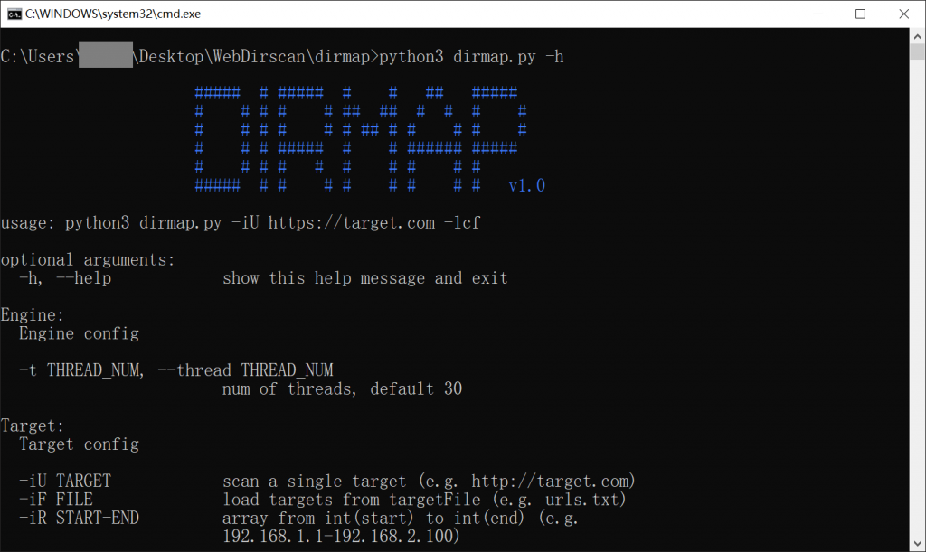 # 使用 单个目标$ python3 dirmap.py -iU https://site.com -lcf# 多个目标$ python3 dirmap.py -iF urls.txt -lcf