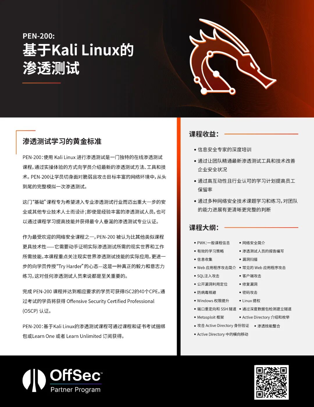 OSEP可以看作是OSCP的一个延伸,是更深入更全面的渗透测试课程,是OffSec提供的PEN-300高级渗透测试课程认证。