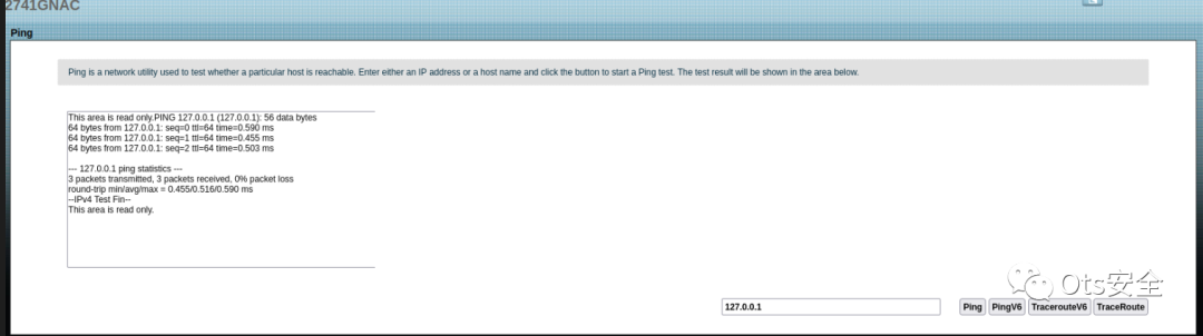 在探索了几个已知的漏洞之后,我决定深入研究新的漏洞。首先,我登录管理门户并开始测试可能导致操作系统命令注入的各种功能。在 Diagnostic 菜单中,我遇到了一个特殊的功能,它允许我使用 ping 和 traceroute 命令测试连接。