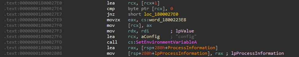 然后,它读取并解密(记住,密钥是小写的计算机名称)位于C:\ProgramData\{ApHash(MachineName)}\{RSHash(MachineName)}\{RSHash(MachineName)}的主有效负载(挖矿)。此外,加载器创建一个进程环境变量(SetEnvironmentVariable)配置,其值为 {“addr”:”185.243.112.239:443″,”p”:”143e256609bcb0be5b9f9c8f79bdf8c9″} 。