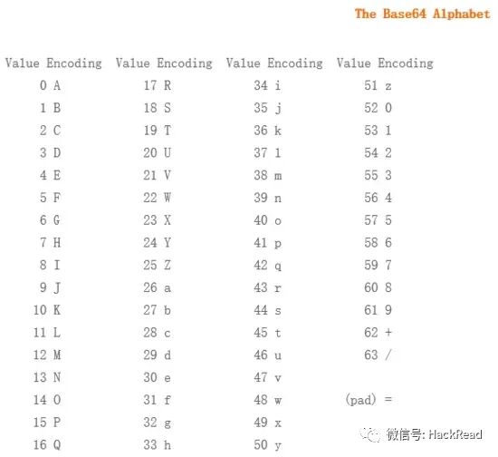 编码原理:Base64编码要求把3个8位字节转化为4个6位的字节,之后在6位的前面补两个0,形成8位一个字节的形式,6位2进制能表示的最大数是2的6次方是64,这也是为什么是64个字符(A-Z,a-z,0-9,+,/这64个编码字符,=号不属于编码字符,而是填充字符)的原因,这样就需要一张映射表,如下: